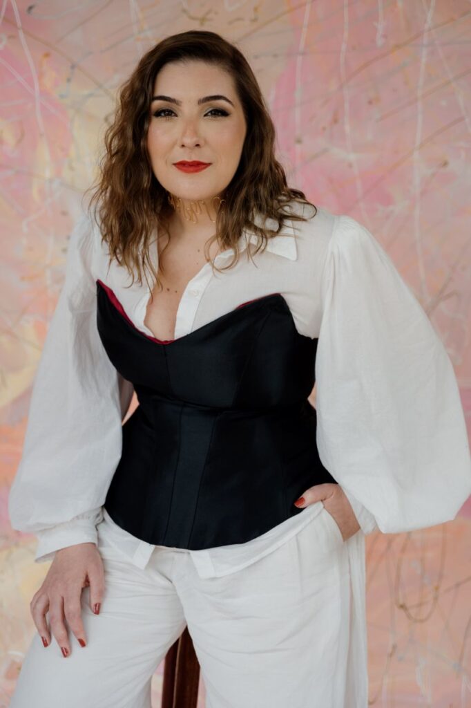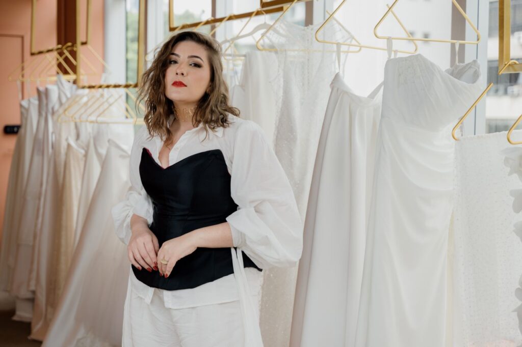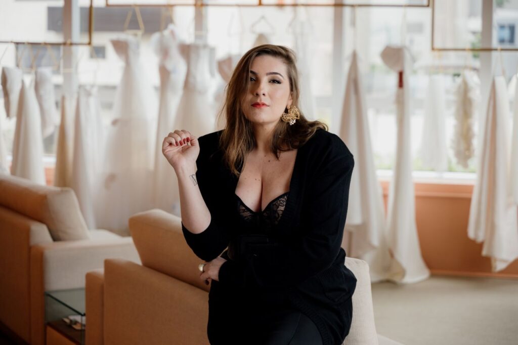 Graduada em Design de Produtos pela UEMG, com especialização em Moda Noiva pelo Instituto Marangoni, em Paris, e formação em Design Artístico de Moda, ela construiu uma trajetória que vai além das tendências.