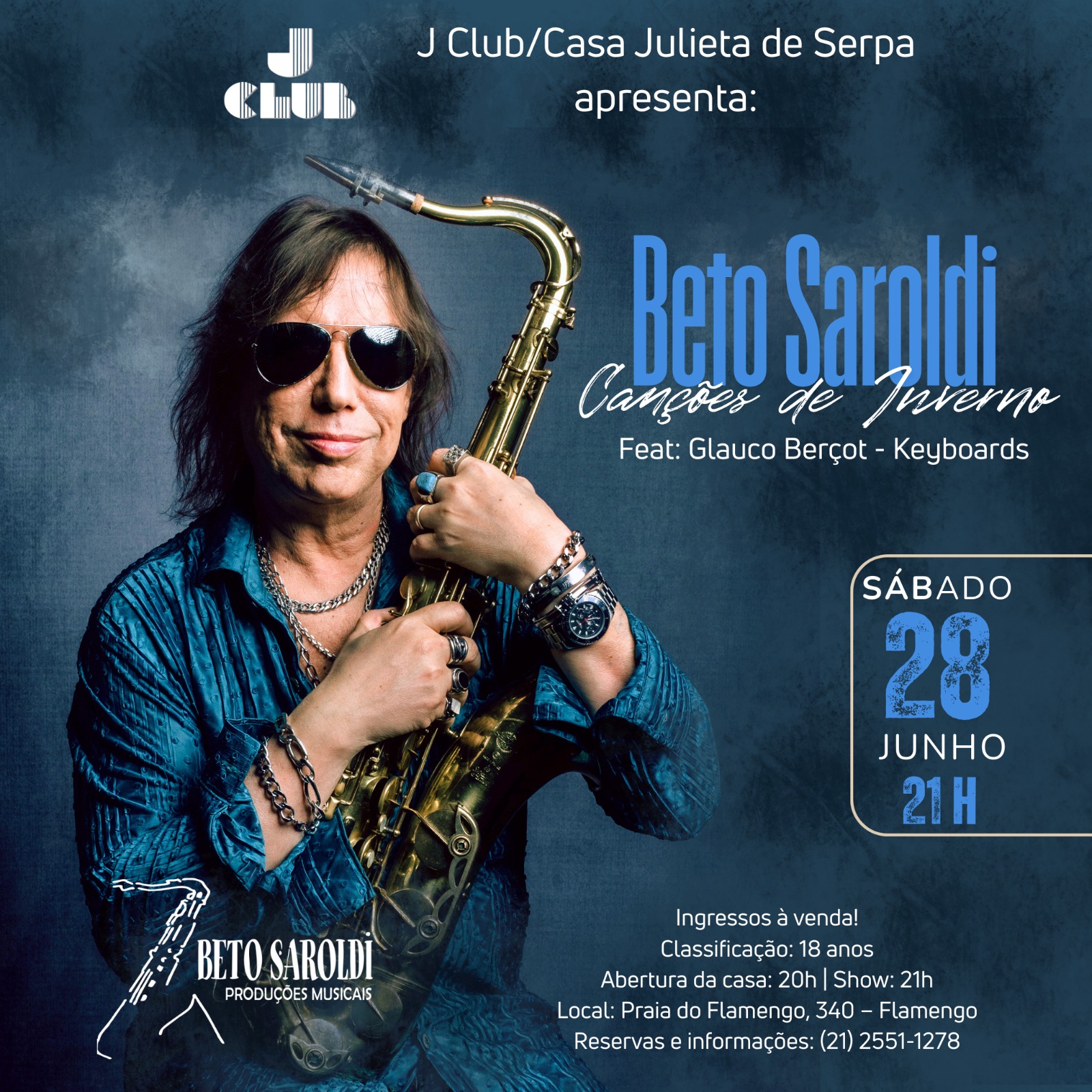 Música Melodias Inesquecíveis com Beto Saroldi na Julieta de Serpa Oscar Muller 26 de Junho, 2025 Saxofonista, compositor, multi-Instrumentista e produtor musical consagrado, Beto Saroldi apresenta-se neste Sábado 28 de Junho às 21h, no JClub da...