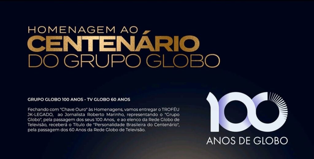 “Celebrar os 100 anos do Grupo Globo e os 60 anos da TV Globo é reconhecer a história viva da comunicação no Brasil. A trajetória do jornalista Roberto Marinho e de toda a equipe da emissora representa um legado que atravessou gerações, moldou narrativas, impulsionou talentos e conectou o país. O Troféu JK-Legado e o título de Personalidade Brasileira do Centenário simbolizam nossa gratidão a uma instituição que ajudou a construir a identidade cultural e midiática do Brasil.”