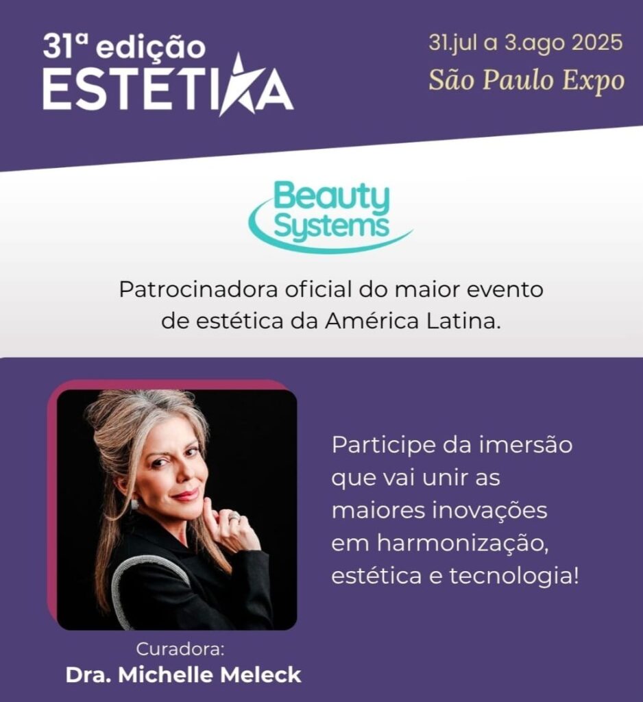 Michelle Meleck também é curadora do 3º Simpósio de Harmonização Facial e Corporal, imersão de um dia inteiro que faz parte dos Simpósios Estetika deste ano, junto ao 1º Simpósio de Melasma (curadoria de João Tassinary), o 4º Simpósio de Pré e Pós-Cirurgia Plástica (curadoria de Vilma Natividade) e o 2º Simpósio de Lipedema (curadoria de Ana Martha TopCorpus). A organização da 31ª edição do Estetika é da GL events Exhibitions, uma empresa da multinacional francesa GL events – um dos principais players do mercado de eventos no mundo, presente em mais de 20 países.