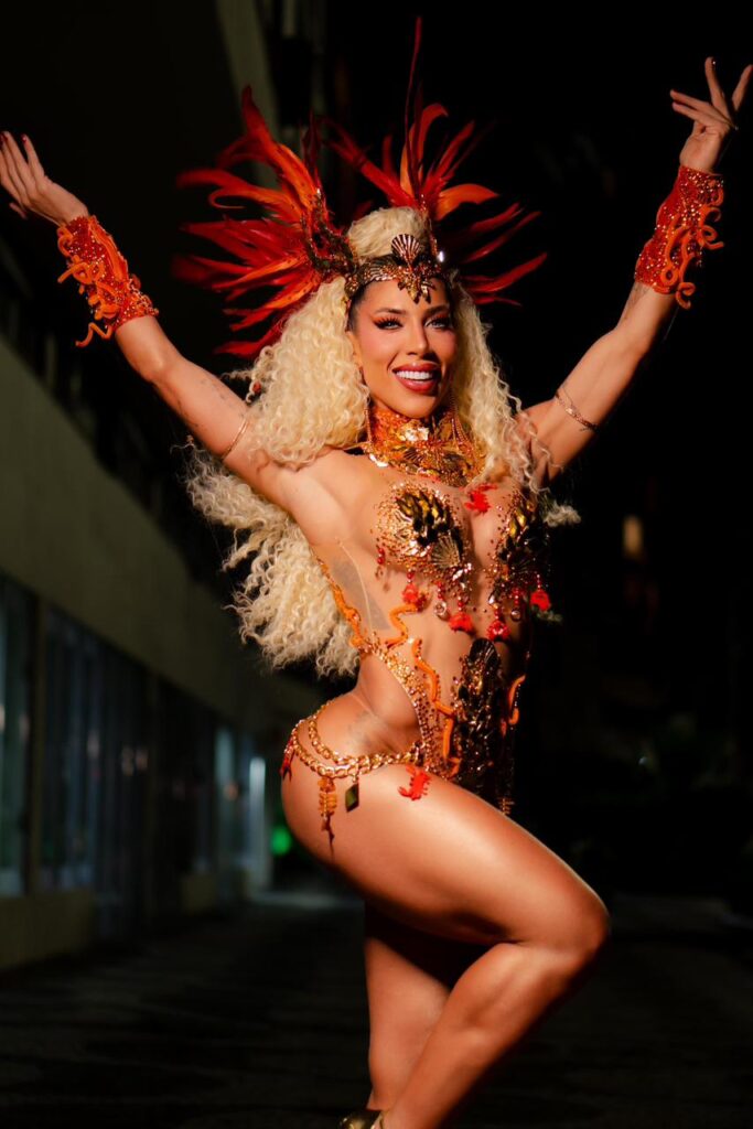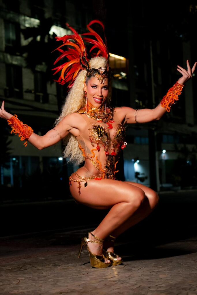 A musa também ressaltou a conexão da fantasia com o manguebeat, movimento que inspira o enredo da escola para o Carnaval 2026.