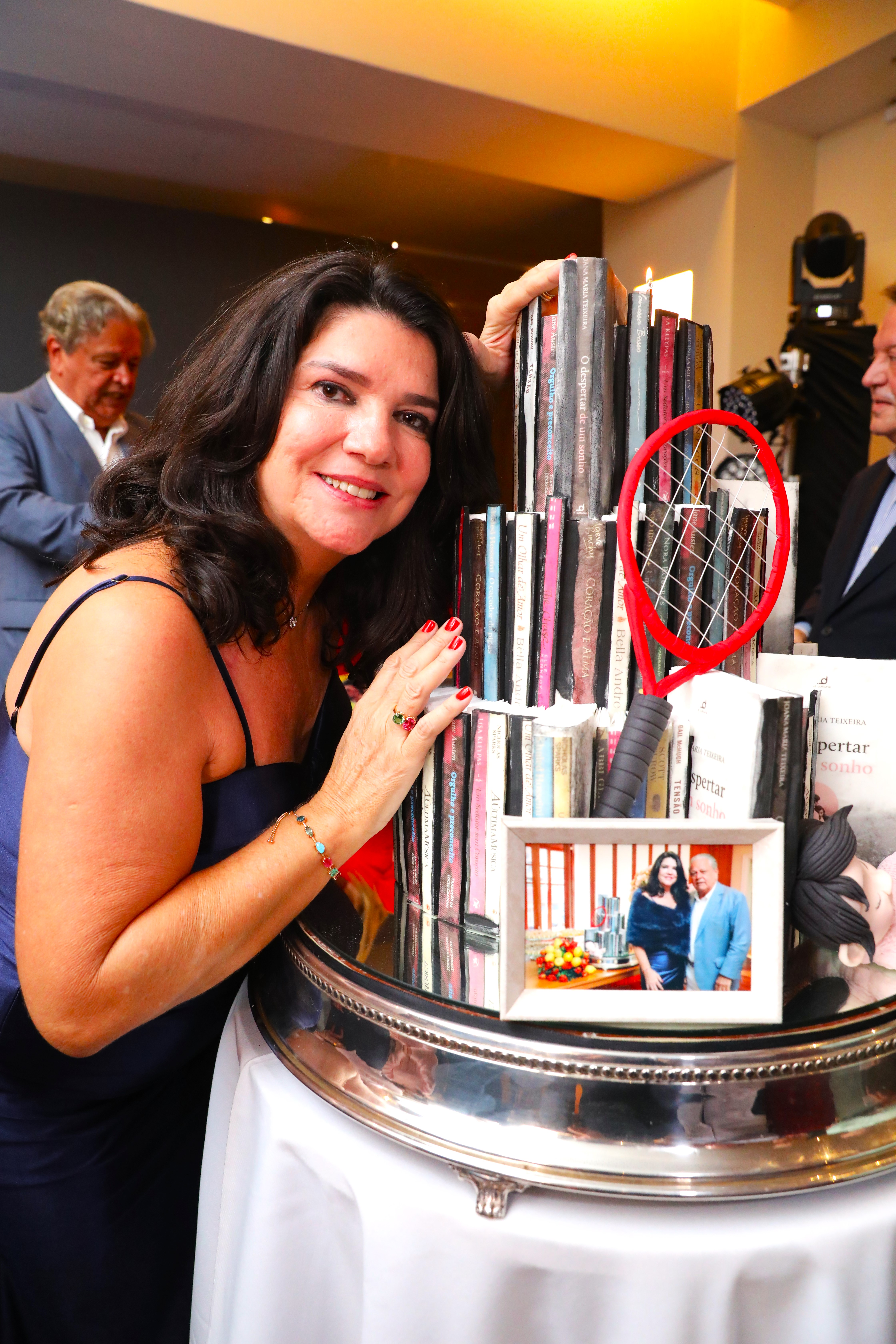 A aniversariante surgiu deslumbrante em um vestido longo azul de seda com detalhes em renda, maquiagem leve e cabelos soltos em ondas suaves. O look clássico e sofisticado encantou a todos, combinando perfeitamente com o estilo da celebração. O ambiente seguiu uma proposta moderna com toques florais, sob a curadoria impecável do decorador Carlos Lamoglia, que transformou o salão em um verdadeiro jardim iluminado.