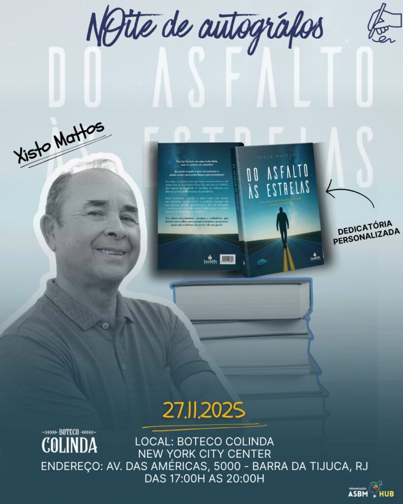 O escritor Xisto Mattosse prepara para receber leitores, amigos e convidados em uma tarde especial de autógrafos do seu novo livro, “Do Asfalto às Estrelas”. O evento será realizado no próximo dia 27 de novembro de 2025, no Boteco Colinda, localizado no New York City Center, na Barra da Tijuca, Rio de Janeiro.