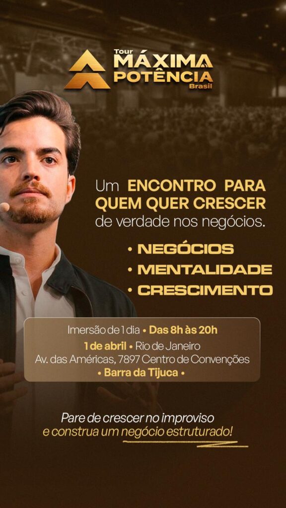 No dia 1º de abril de 2026, o Fire Centro de Convenções Barra da Tijuca, no Rio de Janeiro, receberá uma das experiências mais aguardadas do ano para donos de negócio: o Máxima Potência Tour, imersão criada e comandada por Davi Braga. Empreendedor desde os 13 anos e ex-participante do Shark Tank Brasil, ele é o empresário mais jovem a integrar a lista Forbes Under 30 no Brasil. Com oito horas intensivas, o evento já consolidado em São Paulo é desenhado para empresários que buscam sair do “achismo” e desejam entrar na rota da execução e da previsibilidade.