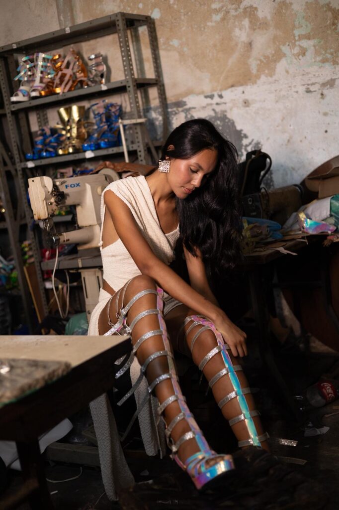 Gravado dentro da própria oficina do artesão, no Rio de Janeiro, o projeto também inclui um editorial de moda fotografado entre ferramentas, materiais e peças em produção. A proposta foi criar um contraste entre o ambiente do artesanato tradicional e a estética contemporânea da moda.