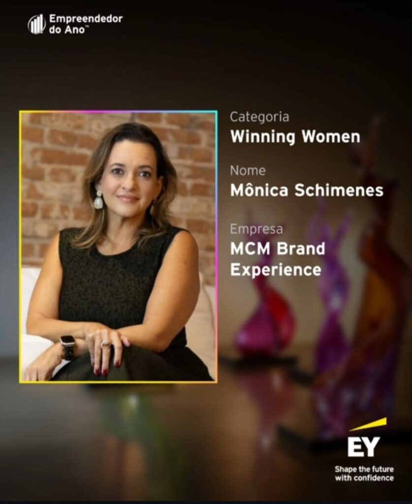 A empresária Mônica Schimenes, fundadora e membro do conselho consultivo do MCM Brand Experience, é uma das homenageadas da 28ª edição do EY Empreendedor do Ano Brasil (EOY 2025), na categoria Winning Women — que reconhece mulheres empreendedoras com trajetórias inspiradoras, inovadoras e de impacto positivo.
