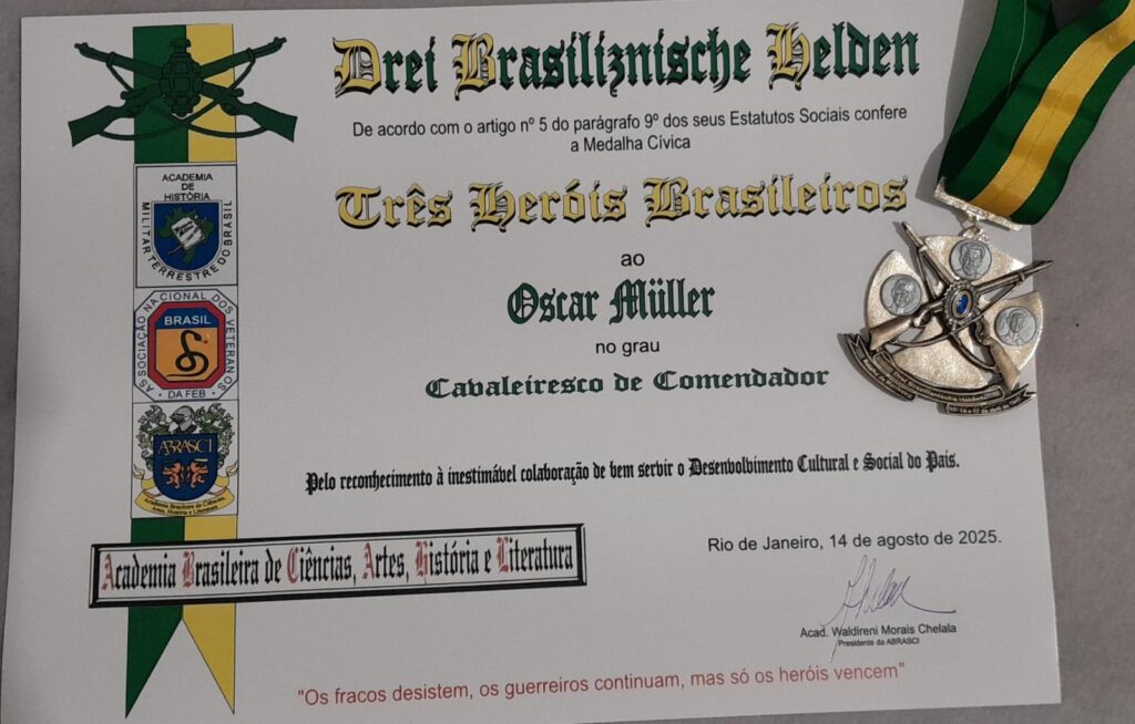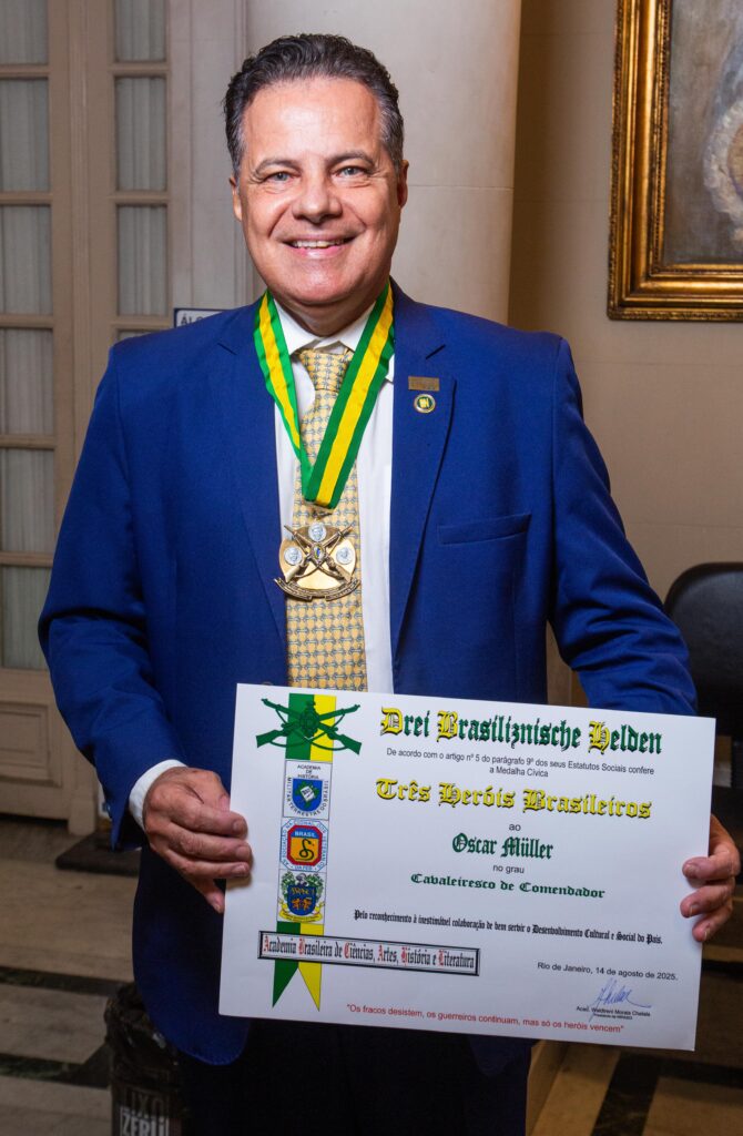 Durante a solenidade, também foi realizada a posse de novos acadêmicos, fortalecendo o compromisso da ABRASCI com a promoção do saber, da ética e da valorização da cultura nacional. Entre os condecorados, destacou-se o jornalista Oscar Müller, CEO da Revista MaisBonita e do Grandes Negócios Brasil, agraciado com a Comenda no Grau Cavaleiresco de Comendador e a Medalha Cívica dos Três Heróis Brasileiros — distinções que reconhecem sua atuação destacada na comunicação e no empreendedorismo brasileiro.