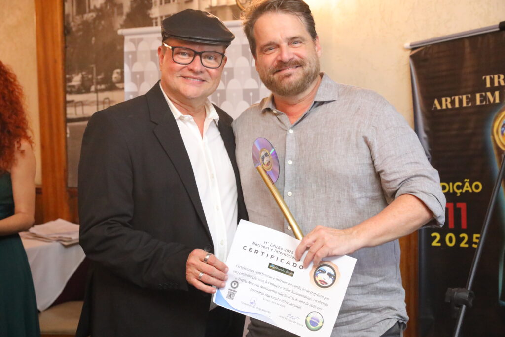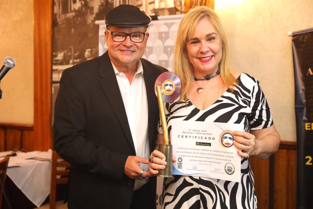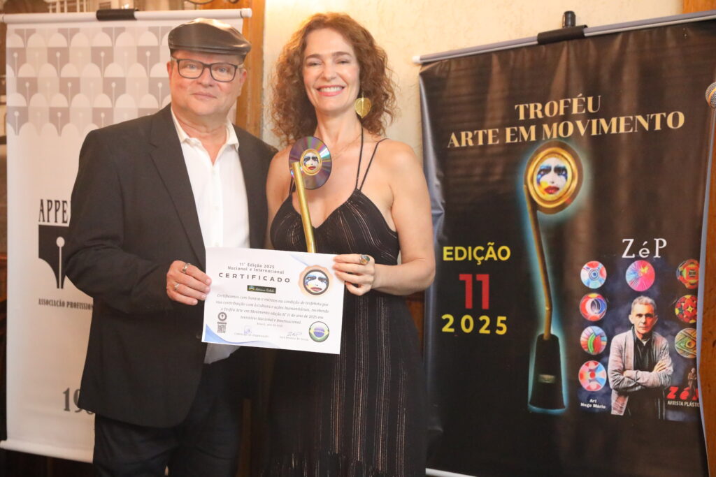 A cerimônia do Prêmio Arte e Movimento 2025, idealizada pelo artista plástico Zep, reuniu artistas, comunicadores e representantes da cena cultural carioca em uma noite marcada por homenagens, reconhecimento e forte valorização da produção artística nacional. Com apoio da Vitrine Diamond, o evento celebrou personalidades que se destacaram ao longo do ano por suas contribuições à arte, à comunicação e às ações comunitárias.